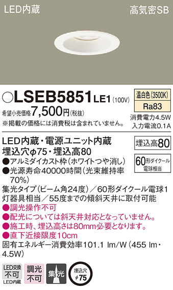 Panasonic ¥À¥¦¥ó¥é¥¤¥È LSEB5851LE1