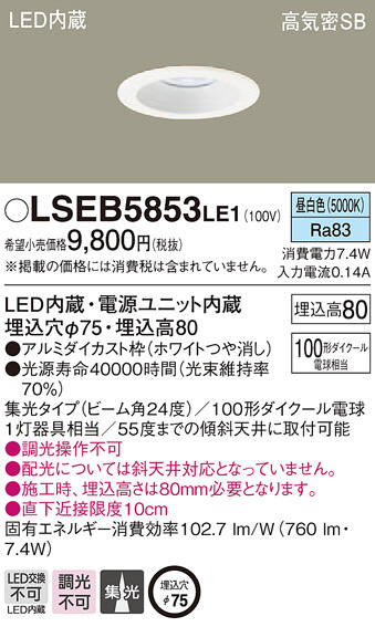 Panasonic ¥À¥¦¥ó¥é¥¤¥È LSEB5853LE1