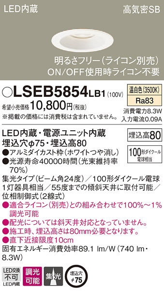Panasonic ¥À¥¦¥ó¥é¥¤¥È LSEB5854LB1