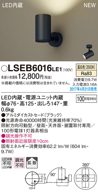 Panasonic LED ¥¹¥Ý¥Ã¥È¥é¥¤¥È LSEB6016LE1