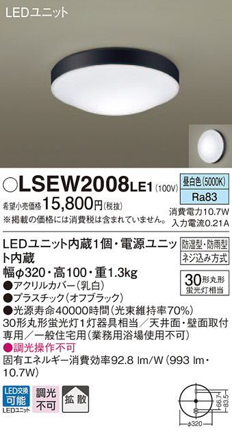 Panasonic ¥¨¥¯¥¹¥Æ¥ê¥¢¡¦¥¢¥¦¥È¥É¥¢ LSEW2008LE1