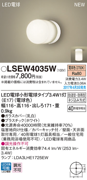 Panasonic LED ¥¨¥¯¥¹¥Æ¥ê¥¢¡¦¥¢¥¦¥È¥É¥¢ LSEW4035W