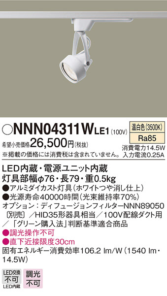 Panasonic ¥¹¥Ý¥Ã¥È¥é¥¤¥È NNN04311WLE1