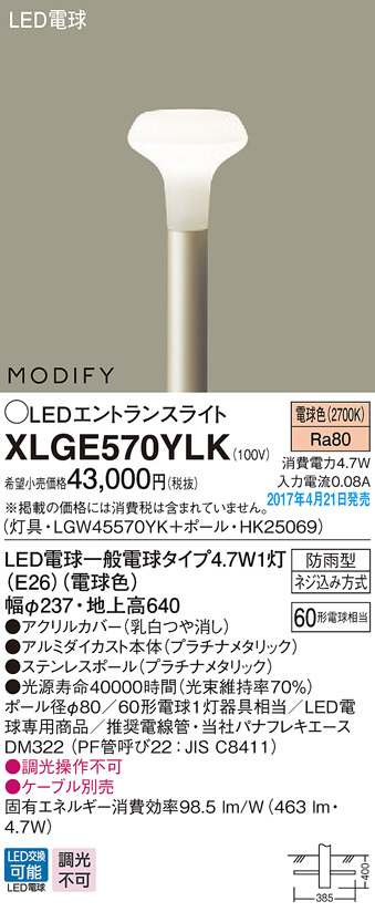 Panasonic LED ¥¨¥¯¥¹¥Æ¥ê¥¢¡¦¥¢¥¦¥È¥É¥¢ XLGE570YLK