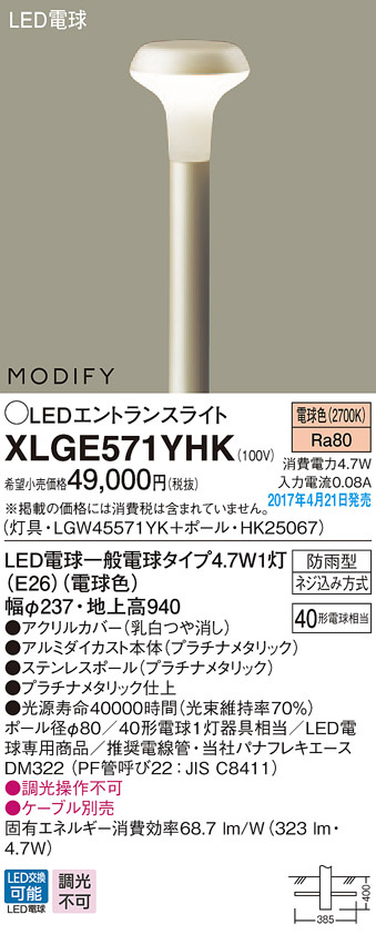Panasonic LED ¥¨¥¯¥¹¥Æ¥ê¥¢¡¦¥¢¥¦¥È¥É¥¢ XLGE571YHK