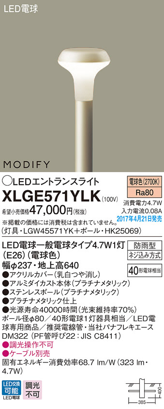 Panasonic LED ¥¨¥¯¥¹¥Æ¥ê¥¢¡¦¥¢¥¦¥È¥É¥¢ XLGE571YLK