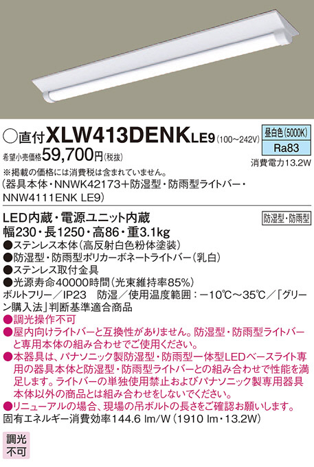 Panasonic LED ¥¨¥¯¥¹¥Æ¥ê¥¢¡¦¥¢¥¦¥È¥É¥¢ XLW413DENKLE9