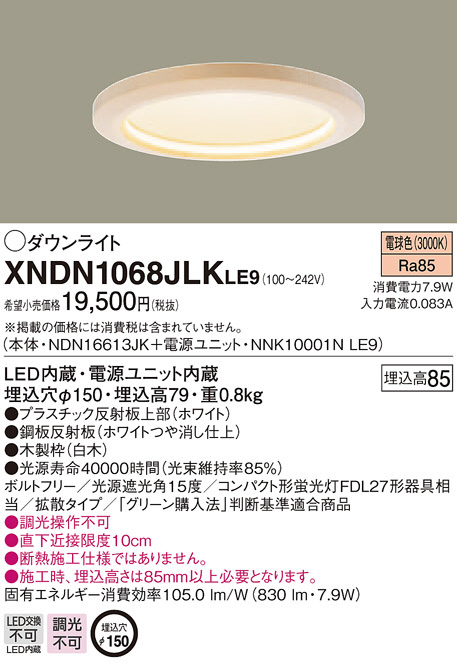 Panasonic LED ¥À¥¦¥ó¥é¥¤¥È XNDN1068JLKLE9