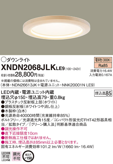 Panasonic LED ¥À¥¦¥ó¥é¥¤¥È XNDN2068JLKLE9