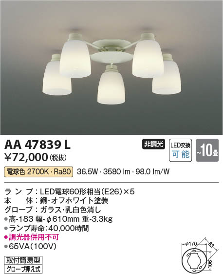 Koizumi ¥³¥¤¥º¥ß¾ÈÌÀ LED¥·¥ã¥ó¥Ç¥ê¥¢ AA47839L