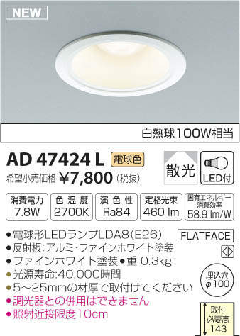 ¥³¥¤¥º¥ß¾ÈÌÀ KOIZUMI LED £Í·Á¥À¥¦¥ó¥é¥¤¥È AD47424L