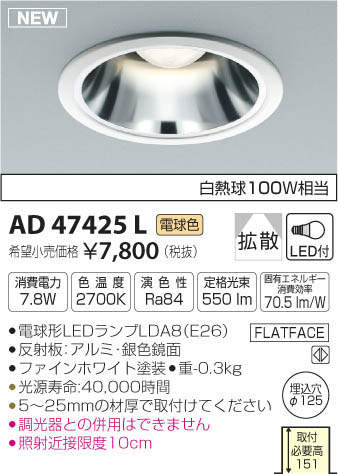¥³¥¤¥º¥ß¾ÈÌÀ KOIZUMI LED £Í·Á¥À¥¦¥ó¥é¥¤¥È AD47425L