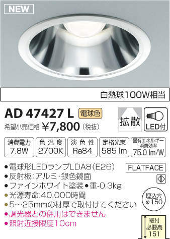 ¥³¥¤¥º¥ß¾ÈÌÀ KOIZUMI LED £Í·Á¥À¥¦¥ó¥é¥¤¥È AD47427L