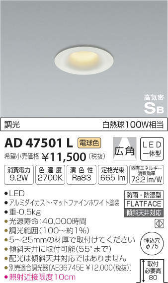 ¥³¥¤¥º¥ß¾ÈÌÀ KOIZUMI ¹âµ¤Ì©¥À¥¦¥ó¥é¥¤¥È AD47501L