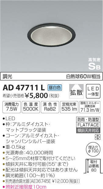 ¥³¥¤¥º¥ß¾ÈÌÀ KOIZUMI ¹âµ¤Ì©¥À¥¦¥ó¥é¥¤¥È AD47711L