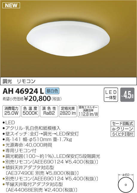 ¥³¥¤¥º¥ß¾ÈÌÀ KOIZUMI LED ÏÂÉ÷¥·¡¼¥ê¥ó¥° AH46924L