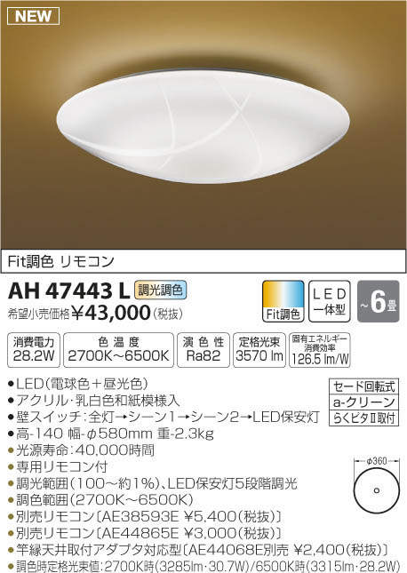¥³¥¤¥º¥ß¾ÈÌÀ KOIZUMI LED ÏÂÉ÷¥·¡¼¥ê¥ó¥° AH47443L