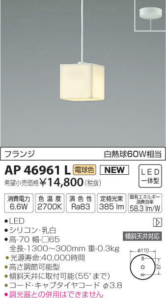 ¥³¥¤¥º¥ß¾ÈÌÀ KOIZUMI LED ¥Ú¥ó¥À¥ó¥È AP46961L