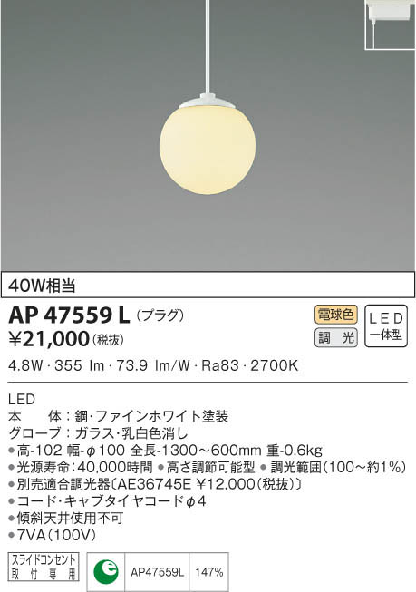 KOIZUMI ¥³¥¤¥º¥ß¾ÈÌÀ ¥Ú¥ó¥À¥ó¥È AP47559L