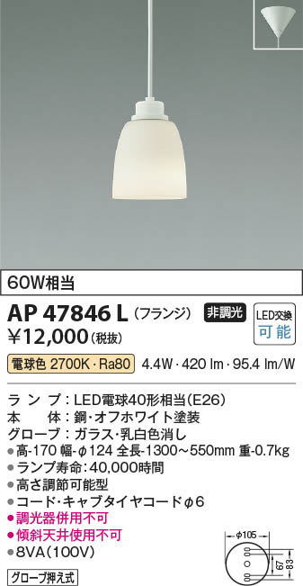 Koizumi ¥³¥¤¥º¥ß¾ÈÌÀ LED¥Ú¥ó¥À¥ó¥È AP47846L