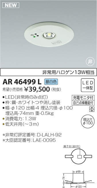 ¥³¥¤¥º¥ß¾ÈÌÀ KOIZUMI LED Èó¾ïÅô AR46499L