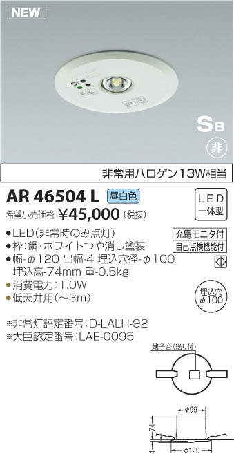 ¥³¥¤¥º¥ß¾ÈÌÀ KOIZUMI LED Èó¾ïÅô AR46504L