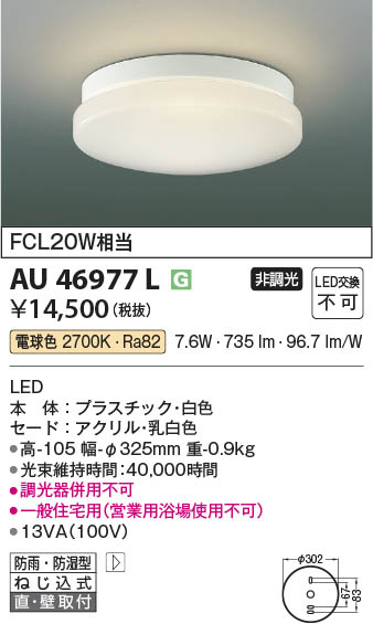 Koizumi ¥³¥¤¥º¥ß¾ÈÌÀ LEDËɱ«Ëɼ¾·¿¥·¡¼¥ê¥ó¥° AU46977L
