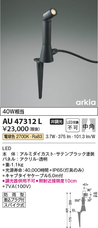 Koizumi ¥³¥¤¥º¥ß¾ÈÌÀ ¥¨¥¯¥¹¥Æ¥ê¥¢¥¹¥Ñ¥¤¥¯¥¹¥Ý¥Ã¥ÈAU47312L