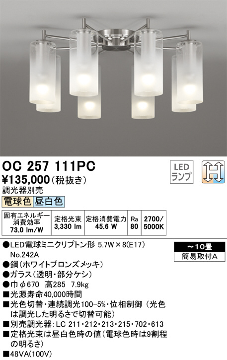 ODELIC ¥ª¡¼¥Ç¥ê¥Ã¥¯ ¥·¥ã¥ó¥Ç¥ê¥¢ OC257111PC