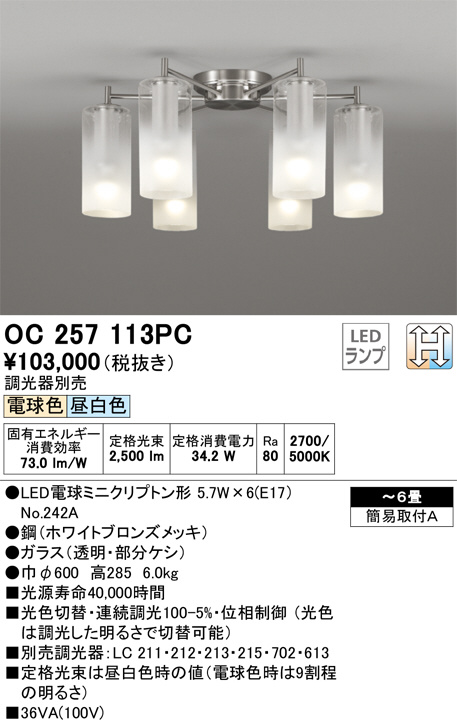 ODELIC ¥ª¡¼¥Ç¥ê¥Ã¥¯ ¥·¥ã¥ó¥Ç¥ê¥¢ OC257113PC