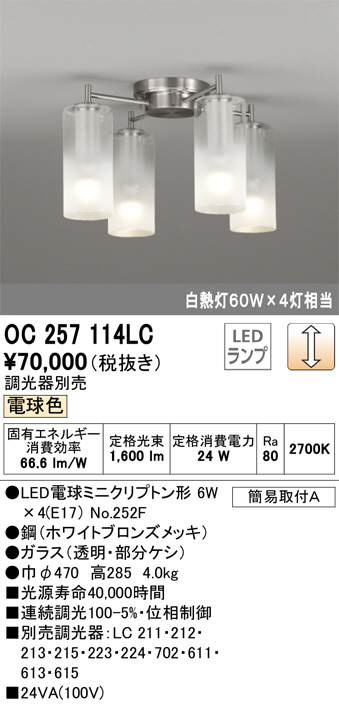 ODELIC ¥ª¡¼¥Ç¥ê¥Ã¥¯ ¥·¥ã¥ó¥Ç¥ê¥¢ OC257114LC