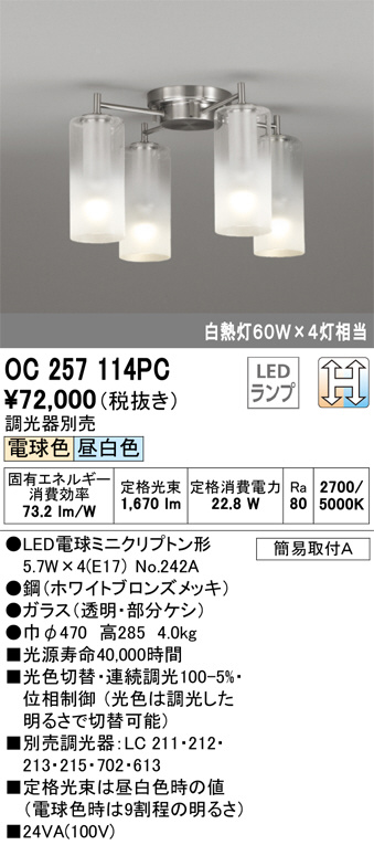 ODELIC ¥ª¡¼¥Ç¥ê¥Ã¥¯ ¥·¥ã¥ó¥Ç¥ê¥¢ OC257114PC