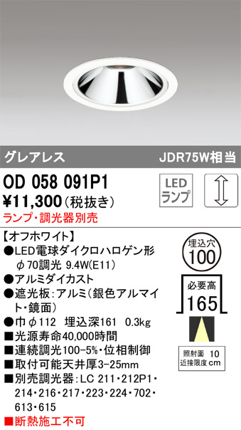 ODELIC ¥ª¡¼¥Ç¥ê¥Ã¥¯ ¥À¥¦¥ó¥é¥¤¥È OD058091P1
