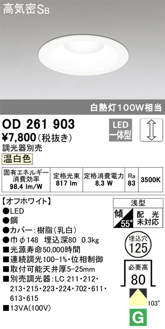 ODELIC ¥ª¡¼¥Ç¥ê¥Ã¥¯ ¥À¥¦¥ó¥é¥¤¥È OD261903