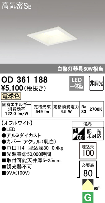 ODELIC ¥ª¡¼¥Ç¥ê¥Ã¥¯ ¥À¥¦¥ó¥é¥¤¥È OD361188