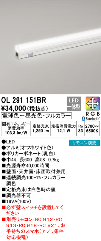 ODELIC ¥ª¡¼¥Ç¥ê¥Ã¥¯ ¼¼ÆâÍÑ´ÖÀܾÈÌÀ OL291151BR