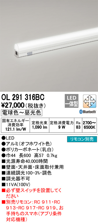 ODELIC ¥ª¡¼¥Ç¥ê¥Ã¥¯ ¼¼ÆâÍÑ´ÖÀܾÈÌÀ OL291316BC