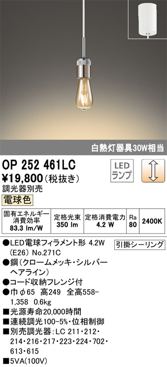 ODELIC ¥ª¡¼¥Ç¥ê¥Ã¥¯ ¥Ú¥ó¥À¥ó¥È¥é¥¤¥È OP252461LC