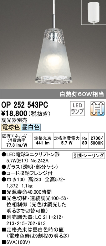 ODELIC ¥ª¡¼¥Ç¥ê¥Ã¥¯ ¥Ú¥ó¥À¥ó¥È¥é¥¤¥È OP252543PC