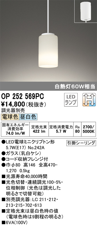 ODELIC ¥ª¡¼¥Ç¥ê¥Ã¥¯ ¥Ú¥ó¥À¥ó¥È¥é¥¤¥È OP252569PC
