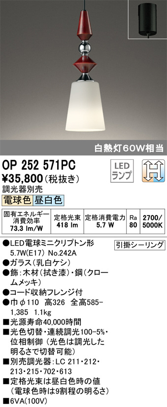 ODELIC ¥ª¡¼¥Ç¥ê¥Ã¥¯ ¥Ú¥ó¥À¥ó¥È¥é¥¤¥È OP252571PC
