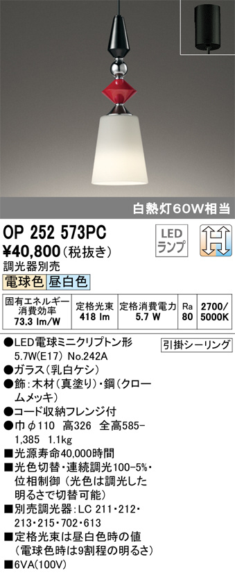 ODELIC ¥ª¡¼¥Ç¥ê¥Ã¥¯ ¥Ú¥ó¥À¥ó¥È¥é¥¤¥È OP252573PC