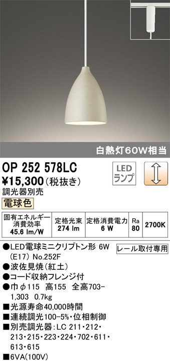 ODELIC ¥ª¡¼¥Ç¥ê¥Ã¥¯ ¥Ú¥ó¥À¥ó¥È¥é¥¤¥È OP252578LC