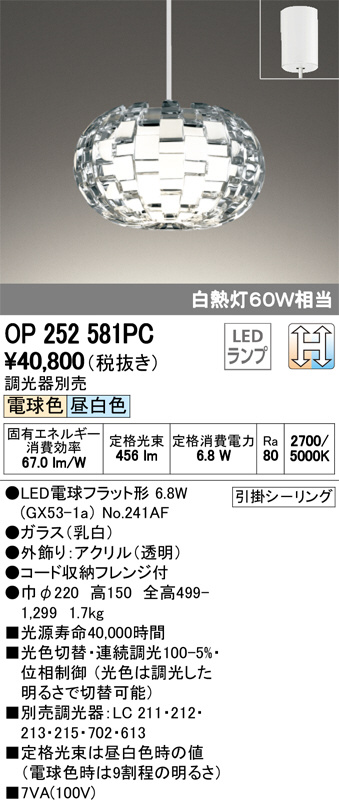 ODELIC ¥ª¡¼¥Ç¥ê¥Ã¥¯ ¥Ú¥ó¥À¥ó¥È¥é¥¤¥È OP252581PC