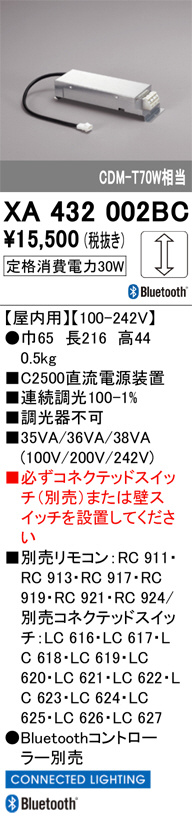 ODELIC ¥ª¡¼¥Ç¥ê¥Ã¥¯ »Ü¹©ÉôÉÊ¡¦¼èÉեѡ¼¥Ä XA432002BC