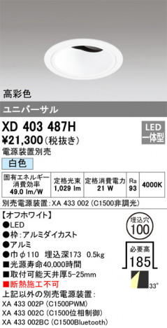 ODELIC ¥ª¡¼¥Ç¥ê¥Ã¥¯ ¥À¥¦¥ó¥é¥¤¥È XD403487H