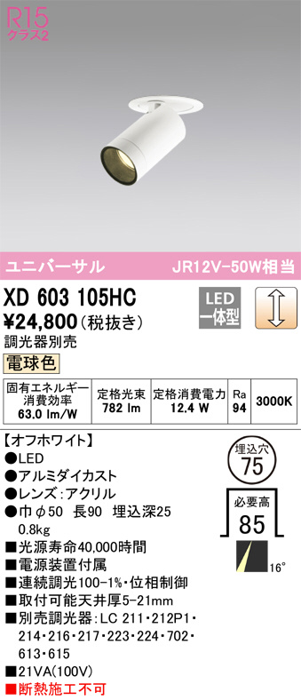 ODELIC ¥ª¡¼¥Ç¥ê¥Ã¥¯ ¥À¥¦¥ó¥é¥¤¥È XD603105HC