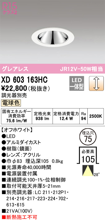 ODELIC ¥ª¡¼¥Ç¥ê¥Ã¥¯ ¥À¥¦¥ó¥é¥¤¥È XD603163HC