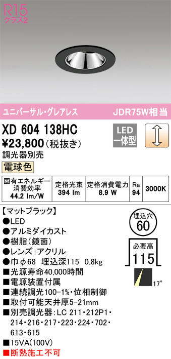 ODELIC ¥ª¡¼¥Ç¥ê¥Ã¥¯ ¥À¥¦¥ó¥é¥¤¥È XD604138HC