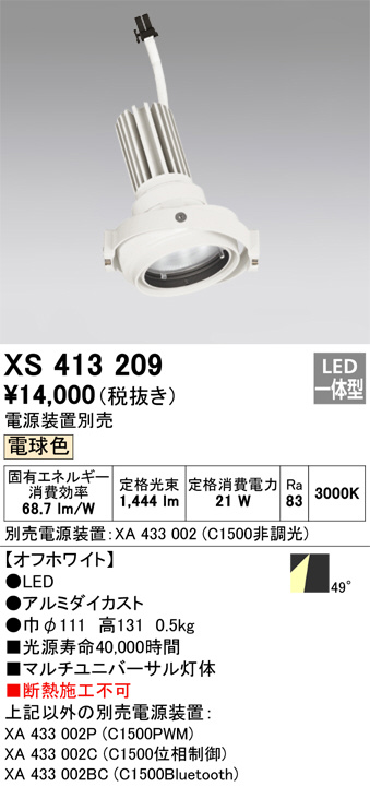 ODELIC ¥ª¡¼¥Ç¥ê¥Ã¥¯ ¥¹¥Ý¥Ã¥È¥é¥¤¥È XS413209
